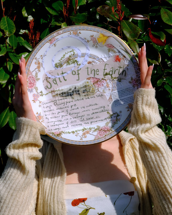 Just as the nourishment of recipes carries ancestral knowledge and histories of migration, the layered and fragmented textiles in this project are a means of tactile and interactive storytelling, layered with stitched elements, words, and symbols recreated using reclaimed materials.